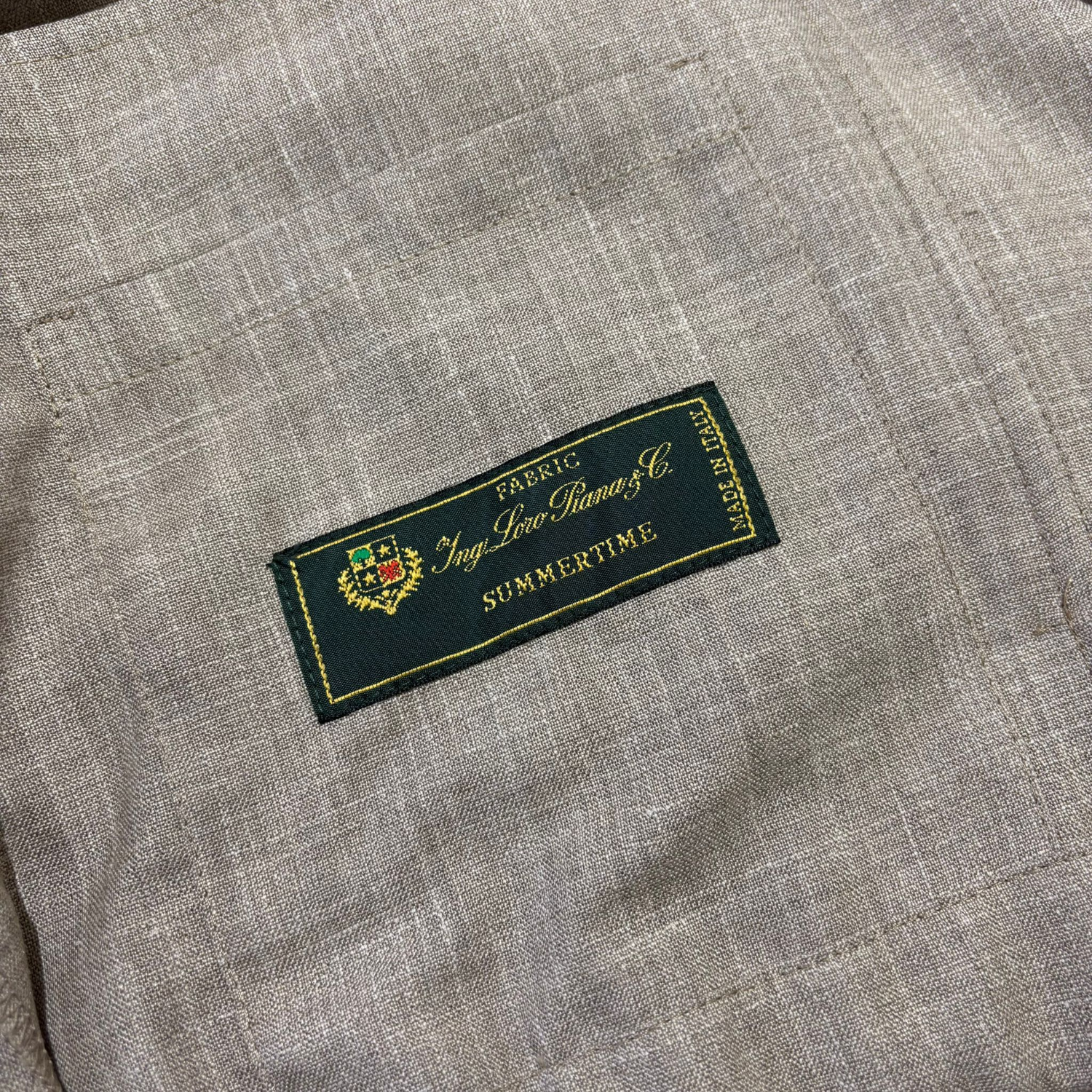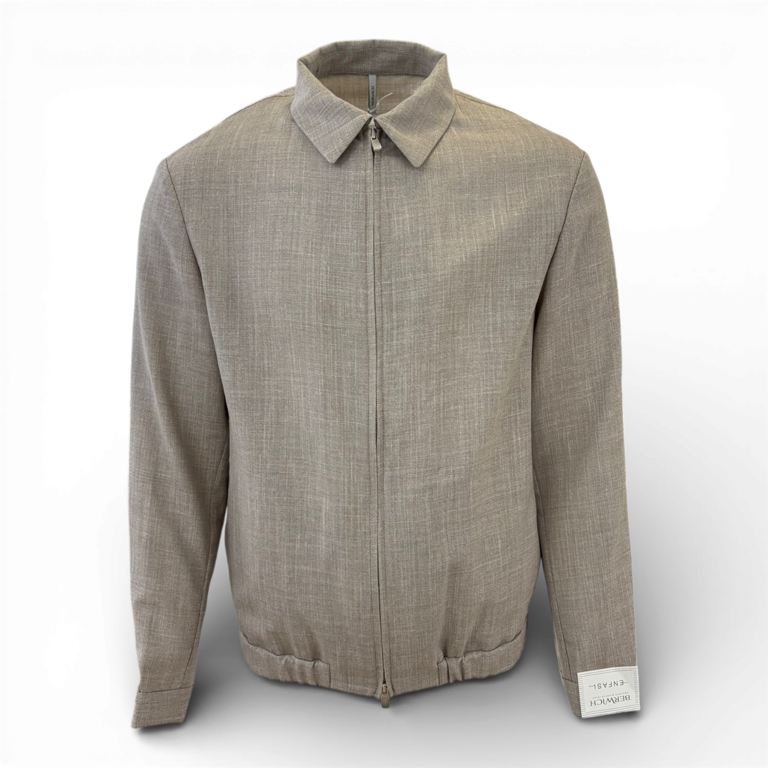 Luxe 2-delige set van Berwich uit Italie. Het overshirt/jasje met pantalon is geweven bij Loro Piana en de kwaliteit is wol/zijde/linnen.