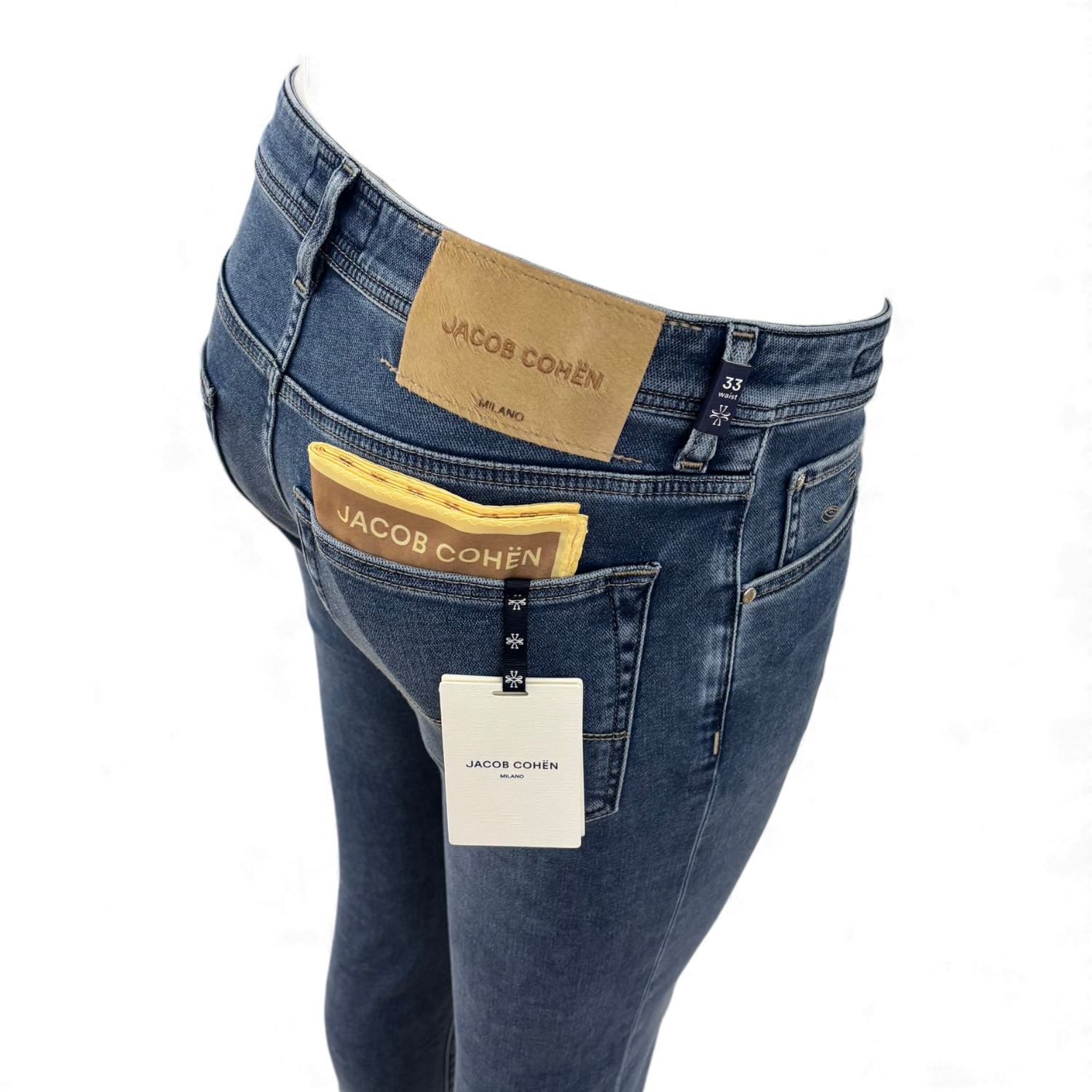 Jeans van Jacob Cohen uit Italie, gemaakt in model Nick Slim.