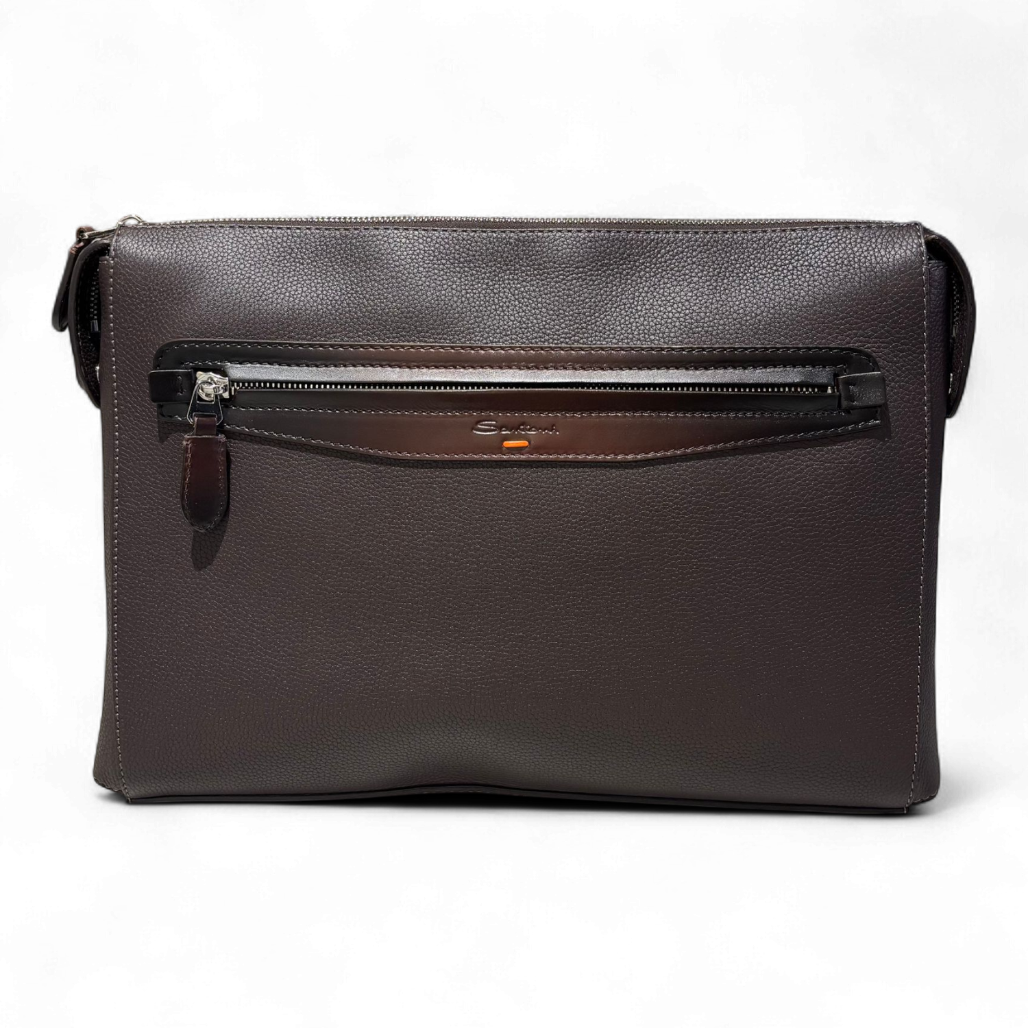 Lederen laptoptas van Santoni uit Italie.