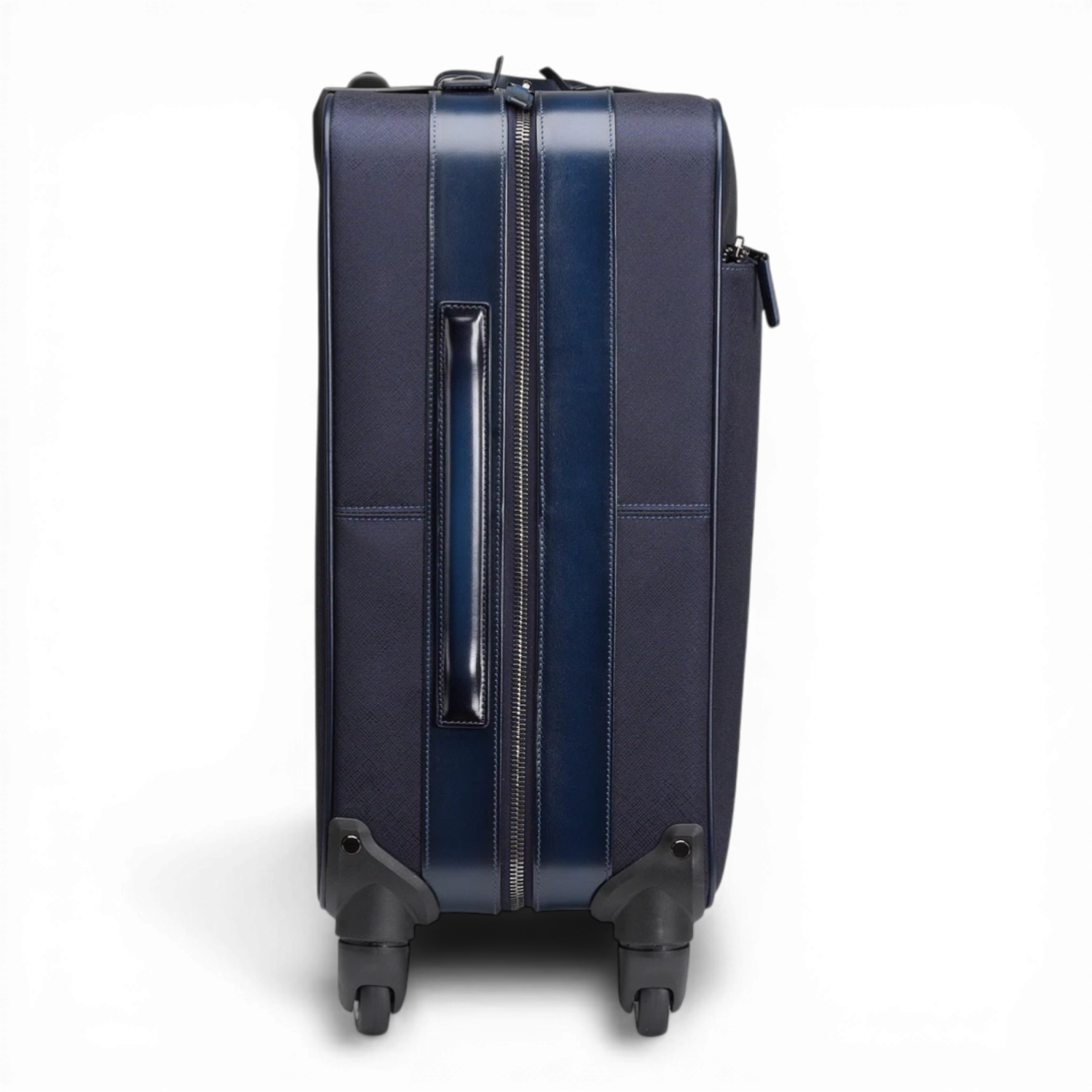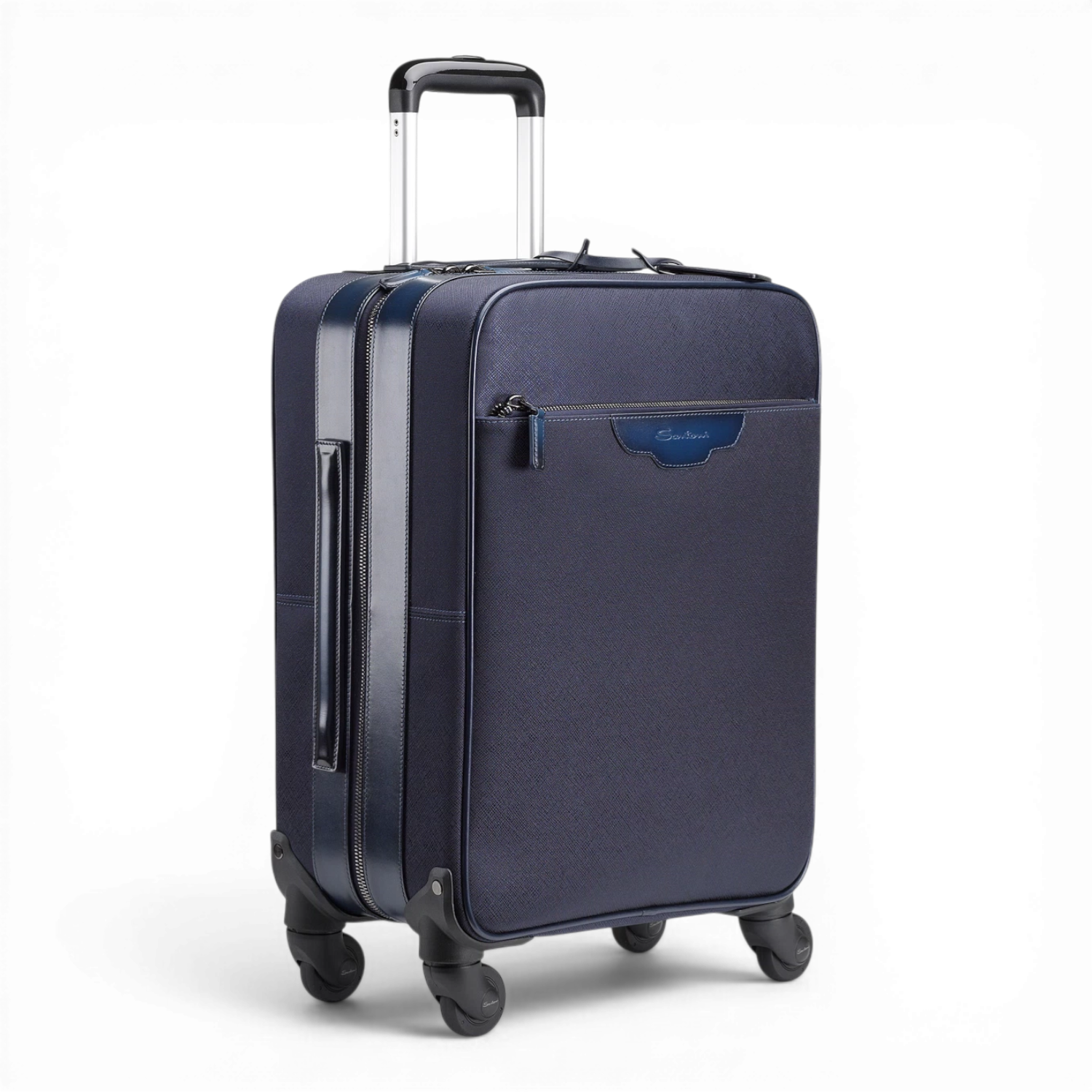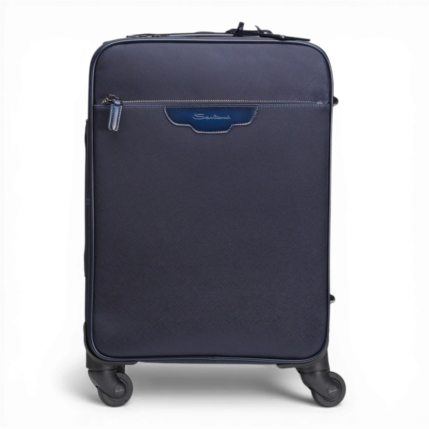 Luxe reiskoffer/trolley van Santoni uit Italie, in nylon en afgewerkt met leren details.