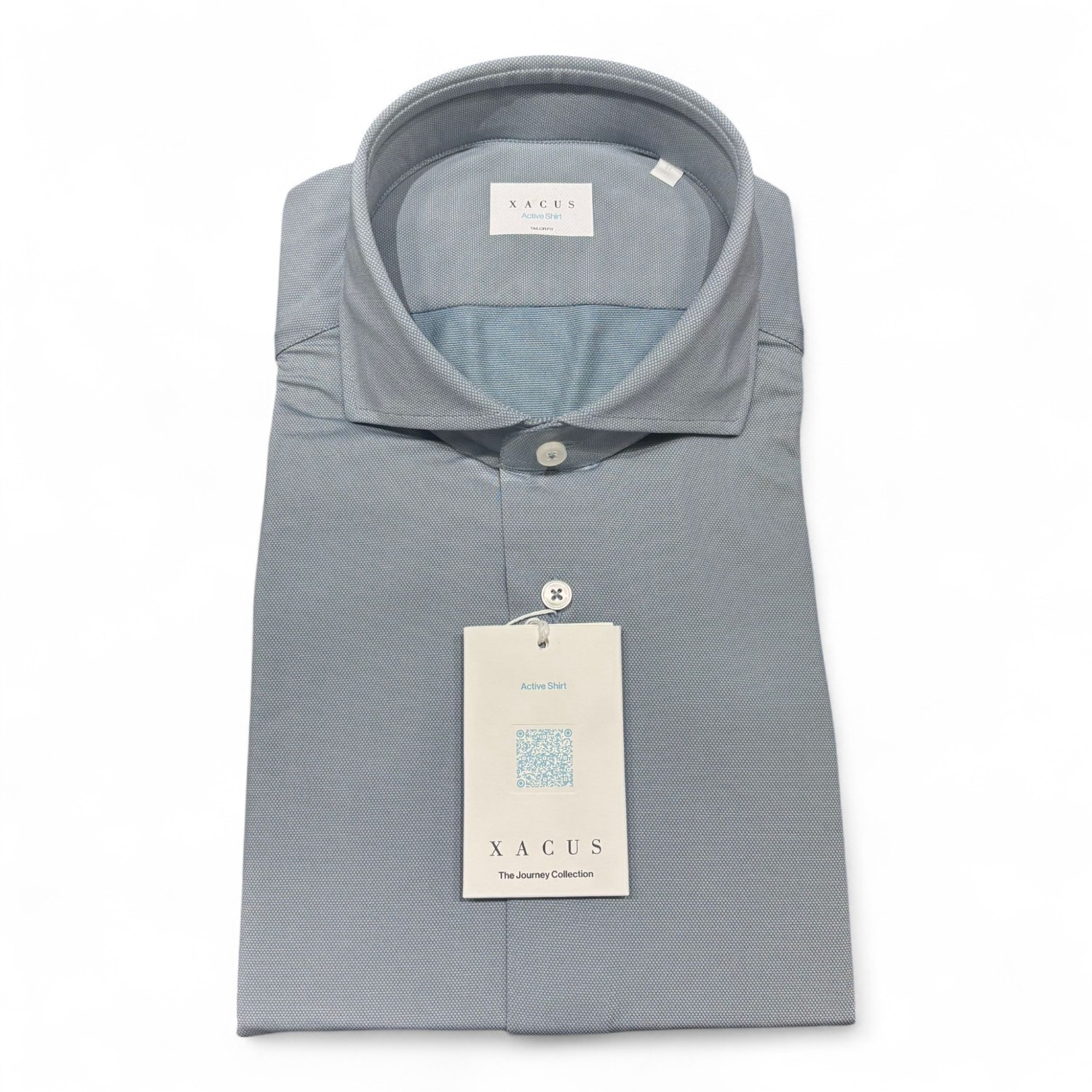 Shirt/overhemd van Xacus uit Italie. Deze ideale stretchkwaliteit, gemaakt in Polyamide/elasthan hoeft niet gestreken te worden en zal ook niet verkleuren.